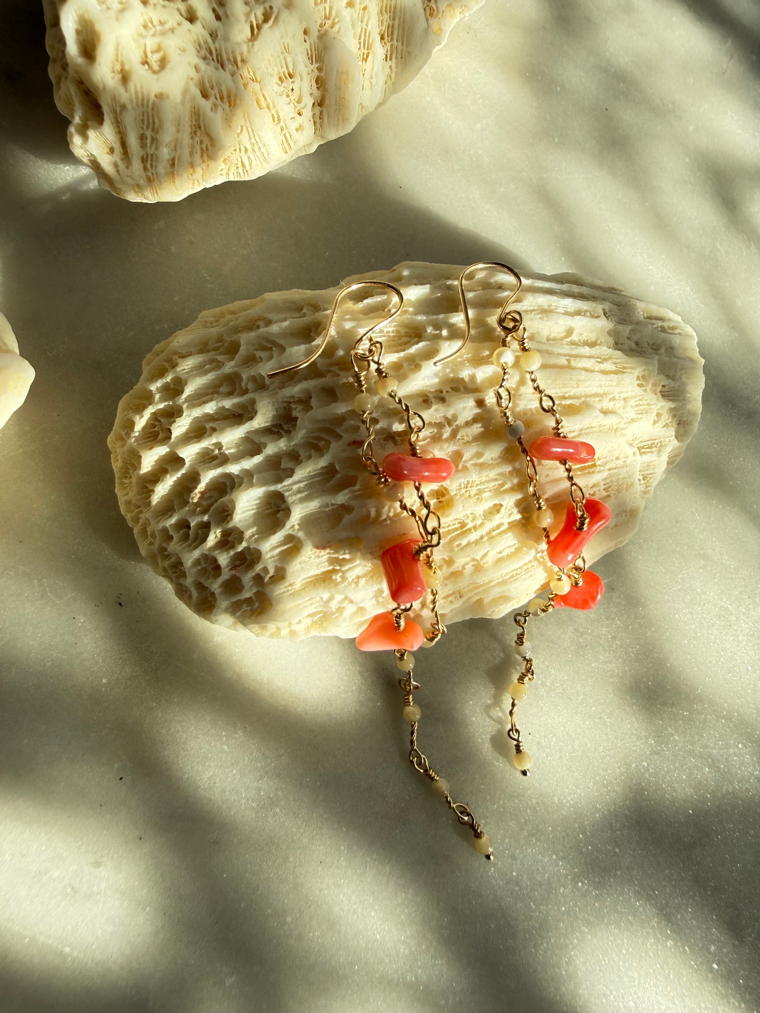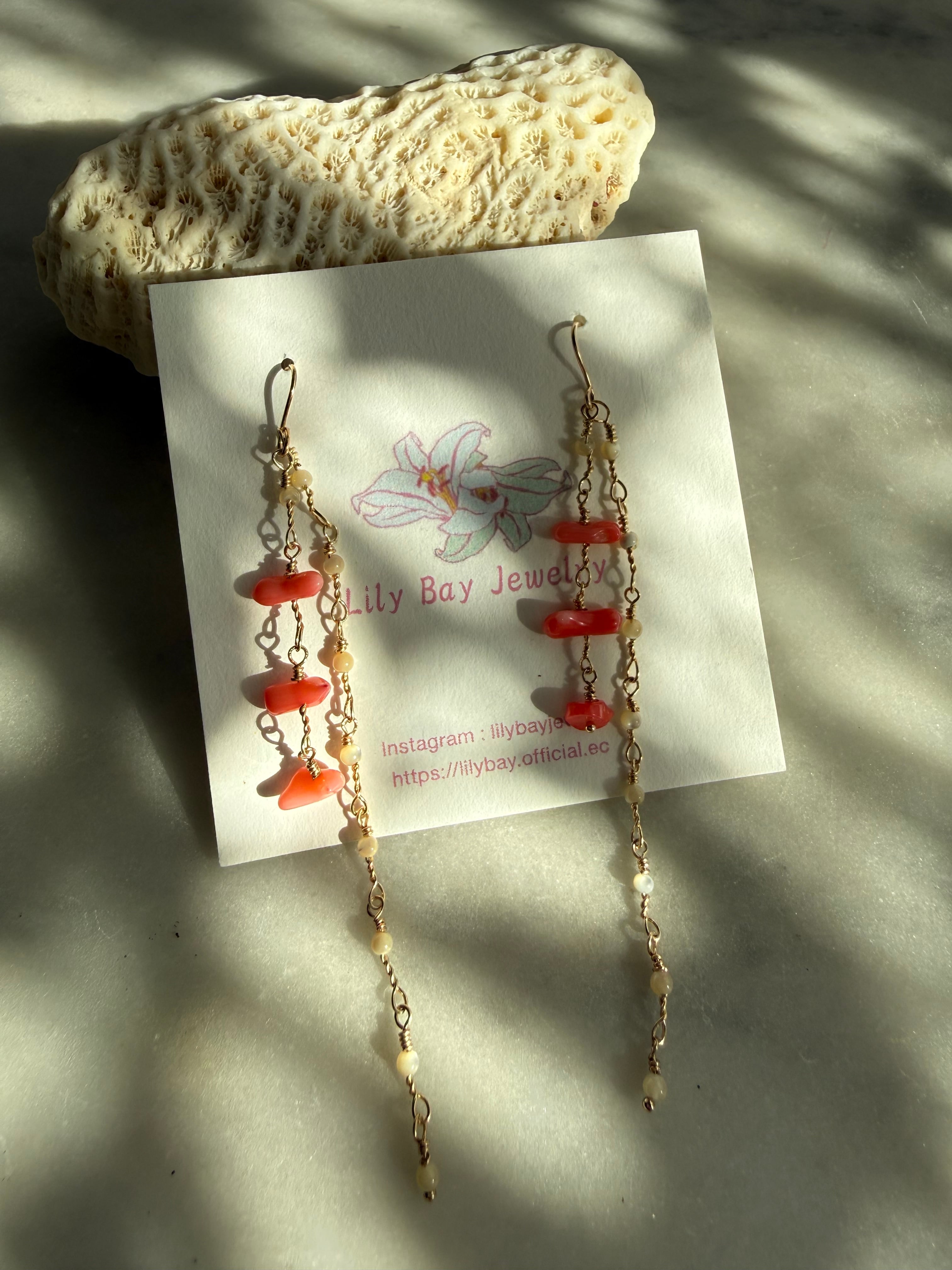 サンゴとマザーパールのロングピアス